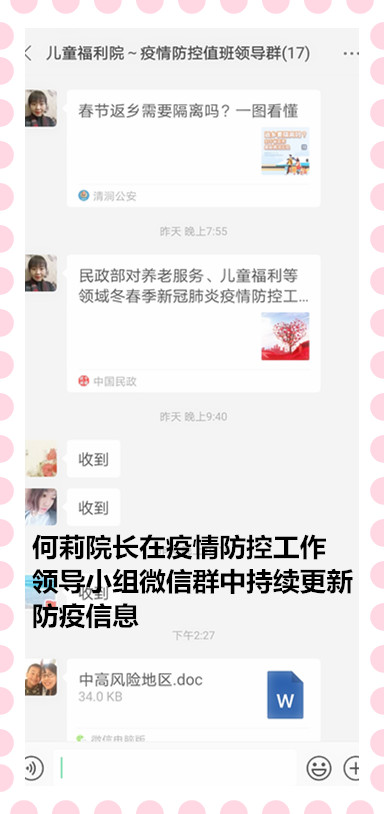 院领导班子于1月18日参加民政部召开的全国养老服务和儿童福利领域冬春季疫情防控工作视频会议,并于会后认真贯彻会议精神,注重防疫细节,落实具体措施。