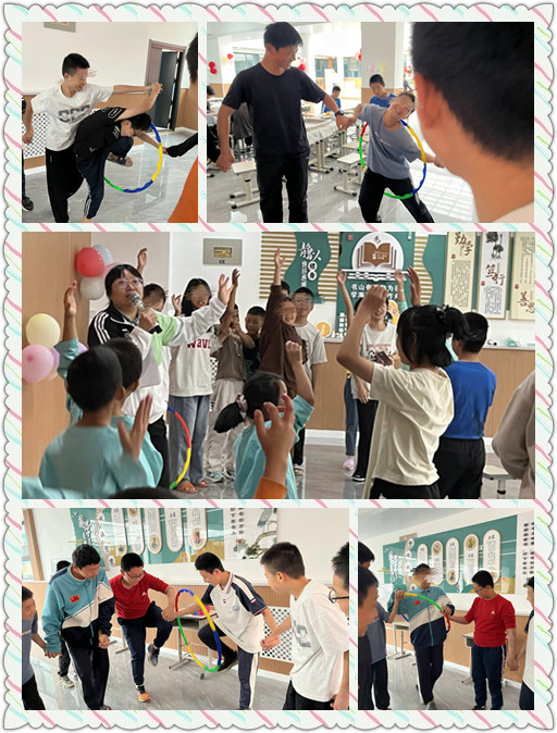 第二个游戏是团圆速递,是以小组为单位传递呼啦圈进行速度比拼,小组成员手拉手围成圆圈,依次从呼啦圈中穿过,过程中不得用手也不能松手。组内儿童年龄相差不一,身高体重也各不相同,大家在游戏中拉起彼此的手,相互出谋划策,互相帮助,默契配合,完成挑战,在游戏的过程中提升了朋辈群体间的相互支持。