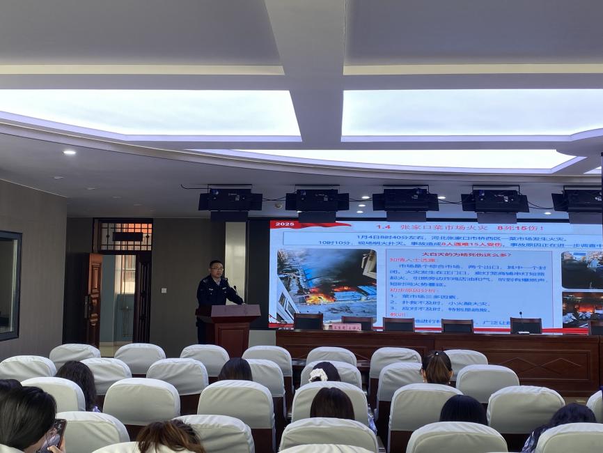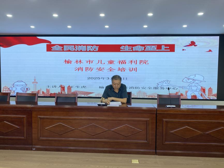 为持续增强干部职工消防安全意识、了解掌握常用消防器材的使用技巧,增强防火、灭火、疏散、逃生等应急技能,进一步夯实我院消防安全工作,2025年3月12日下午,榆林市儿童福利院邀请榆林市众安消防安全服务中心王生虎教官给全院干部职工开展消防知识科普、技能培训讲座。工会主席白霄主持。