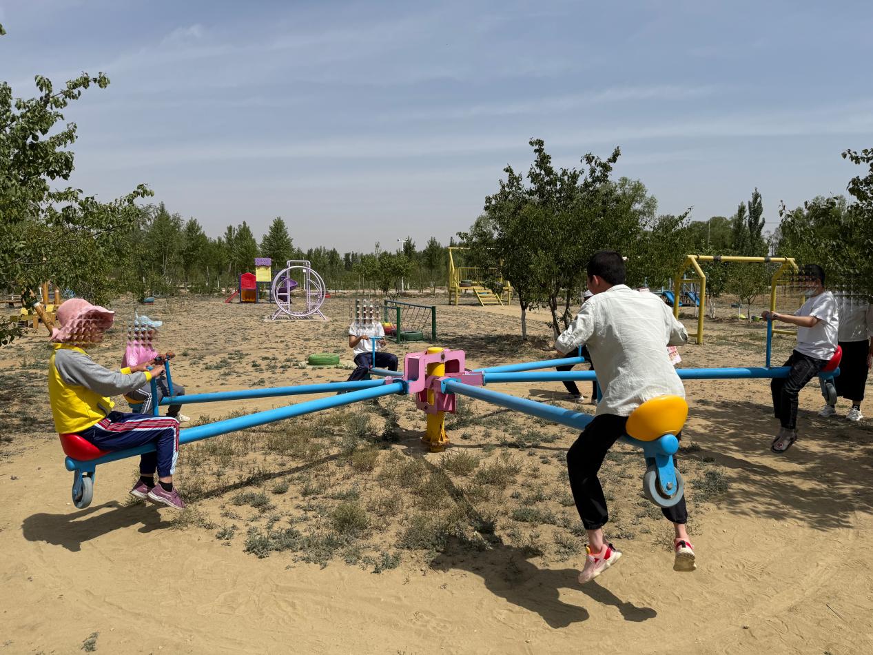 到达后,孩子们在家长陪同下开启欢乐游玩。崔院长陪孩子们坐上小火车,一路上欢声笑语不断。孩子们还体验了旋转木马、碰碰车等项目,在荡秋千时,家长推动,孩子欢笑。之后来到动物园区,孩子们喂小兔子、小羊等萌宠,感受大自然的美好。