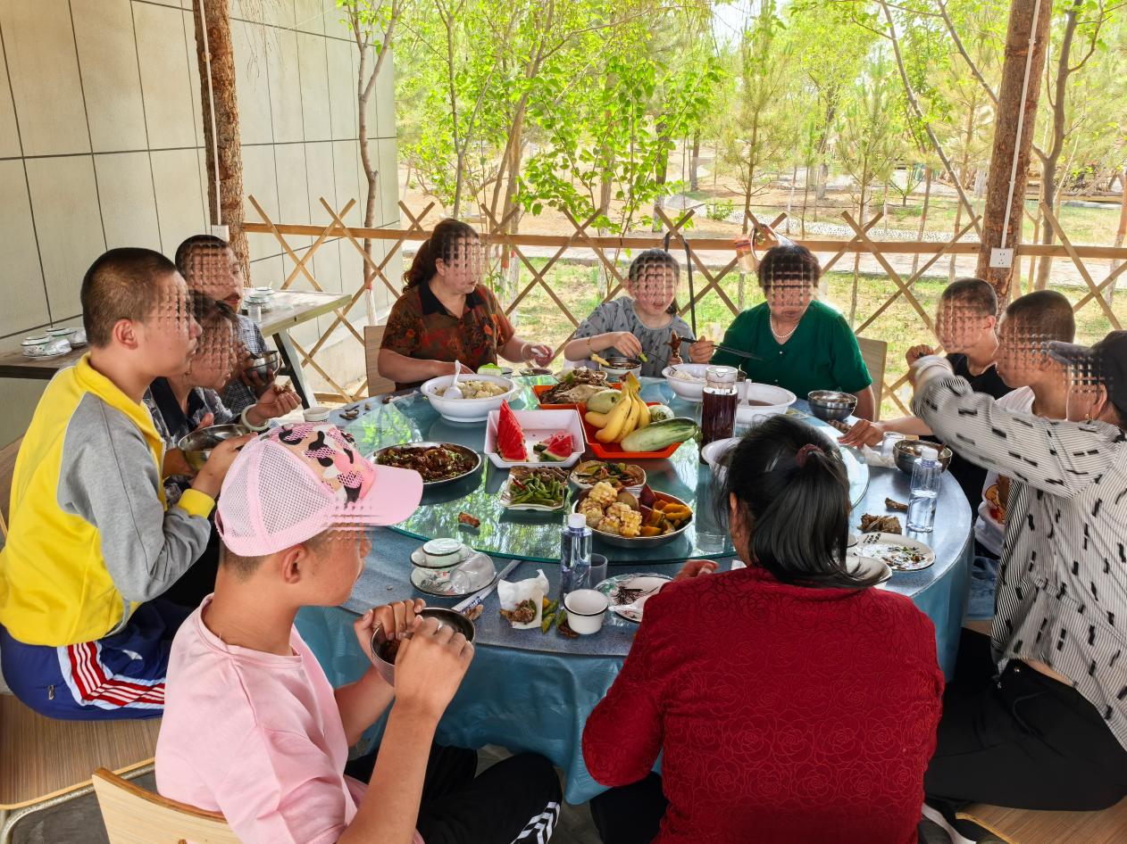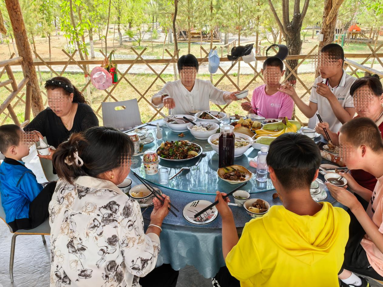 11点30分,大家围坐享用农家饭,孩子们吃得津津有味,现场氛围温馨。