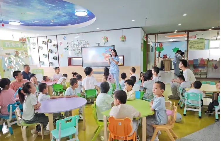 预备——开始!"随着哨声响起,小朋友们小手紧握操做绳。"左!右!左!",在老师们的指挥下,孩子们手脚并用,齐心协力让龙舟"游动"起来。有的队伍配合默契,龙舟快速前进;有的手忙脚乱,龙舟在原地打转,惹得围观人群哈哈大笑。加油声、欢笑声此起彼伏,将传统龙舟赛变成了充满童趣的团队游戏。