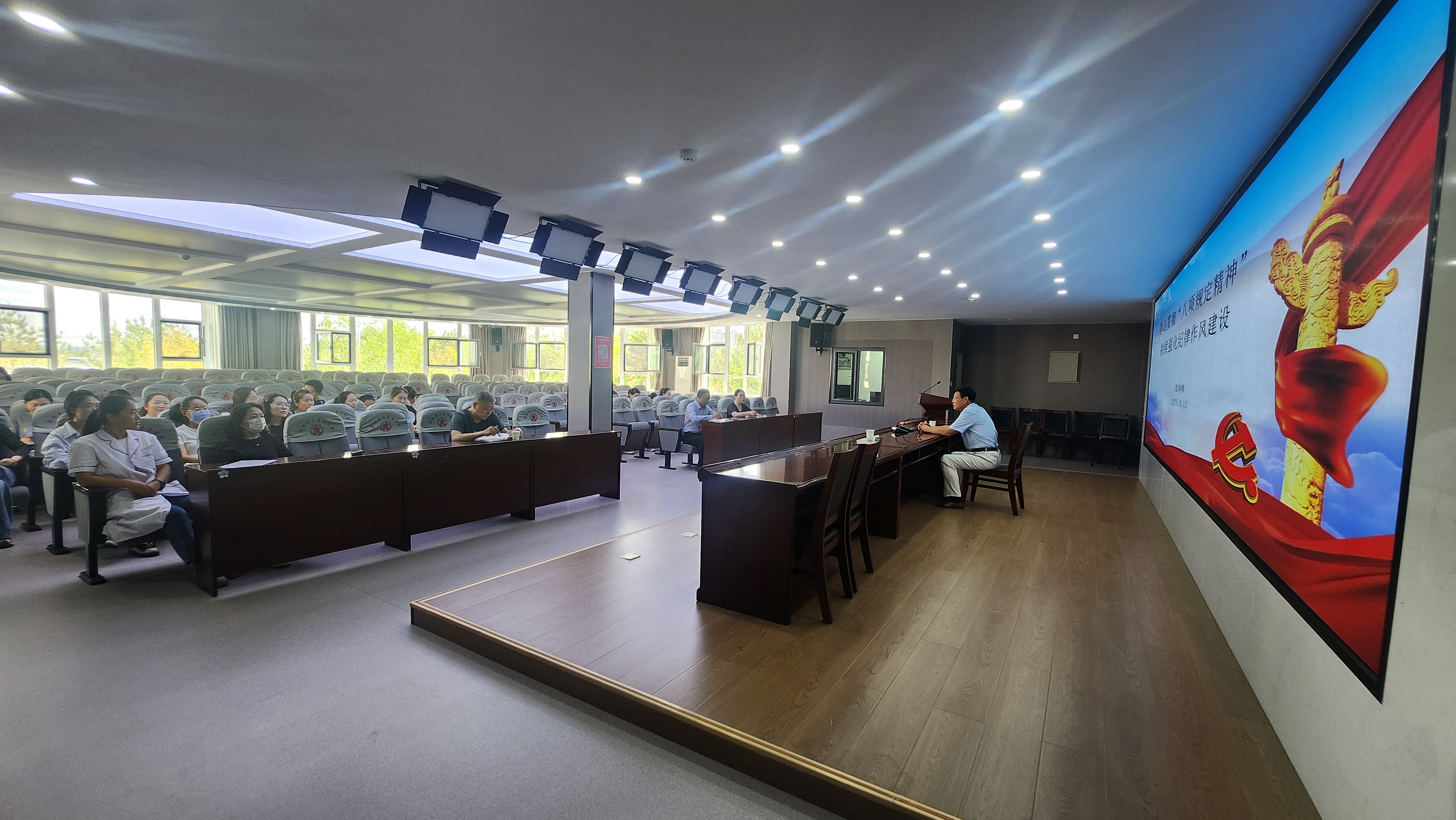 为深入学习贯彻中央八项规定精神,持续强化纪律作风建设,我院邀请榆林市决策咨询委员会委员、榆林市委党建研究员、榆林市委理论讲师团原团长雷润峰为我院干部职工讲授党课,会议由院长雷祥鹏主持,科室主任、全体党员、部分职工参加了会议。