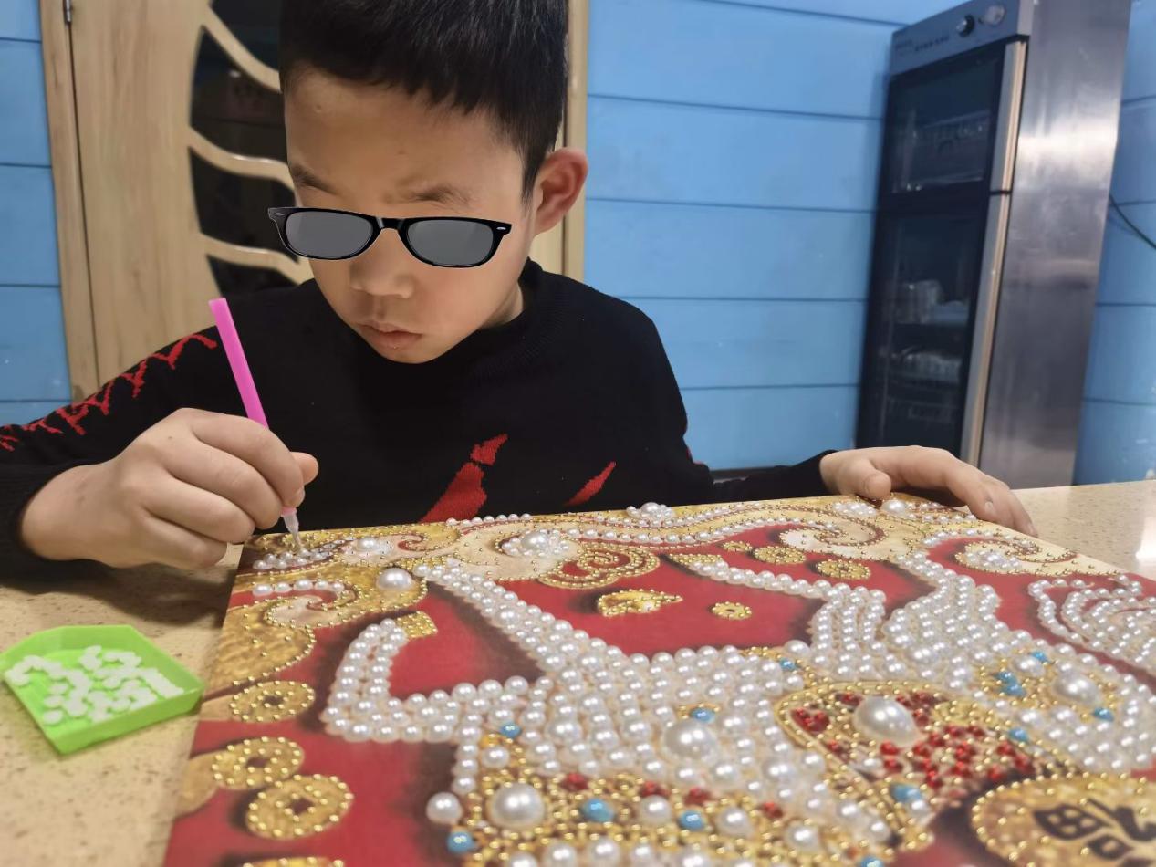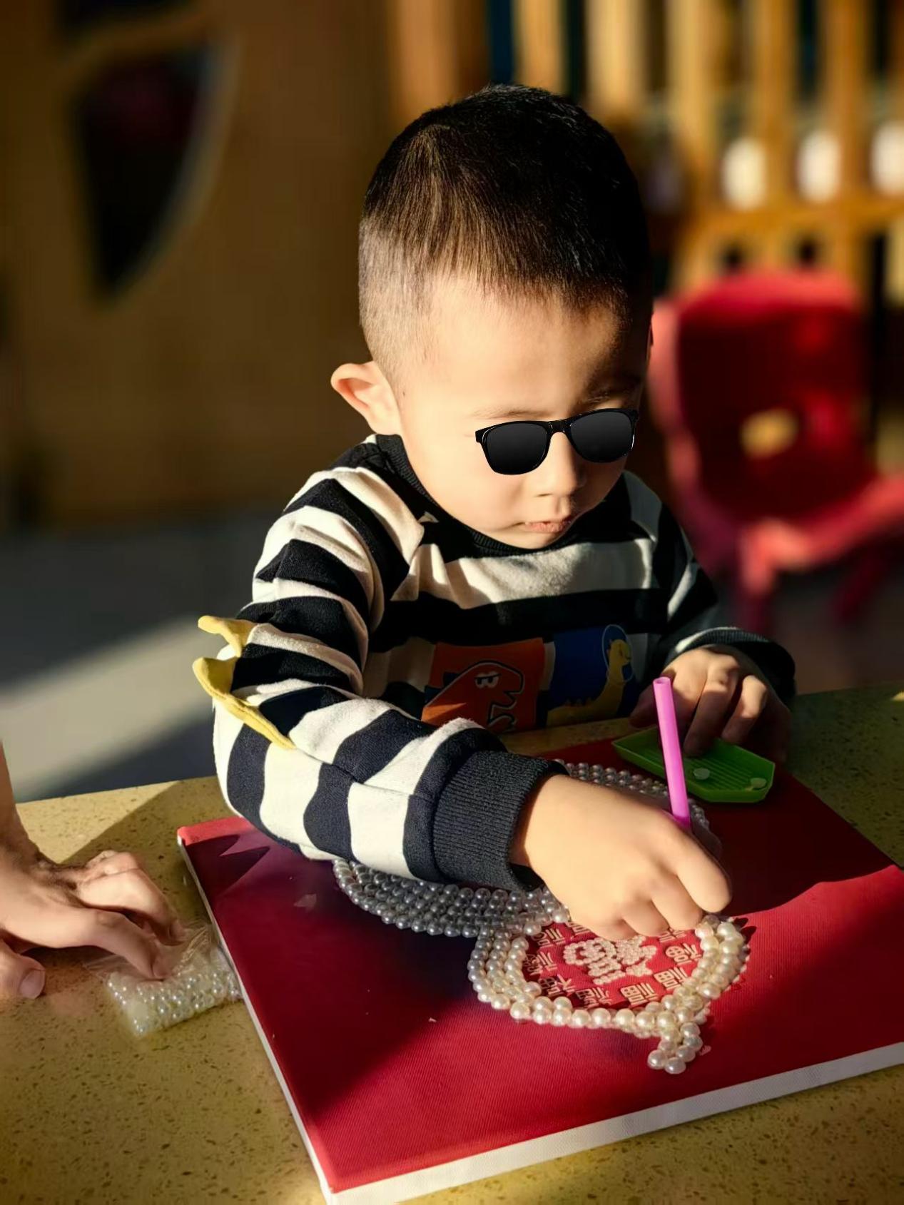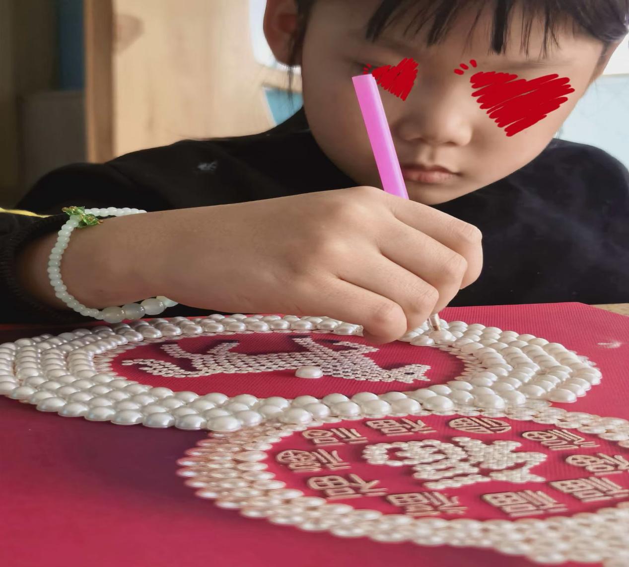 瞧呀,孩子们正兴致勃勃地做着新年手工。他们的眼神专注又明亮,小手紧紧握着工具,像是在打造一份独一无二的新年礼物。有的孩子小心翼翼地粘贴着珍珠,为手工作品增添一份闪亮,那认真的模样仿佛在构建自己的小小梦想王国;有的孩子精心挑选着彩纸,折叠出五彩的形状,每一个动作都饱含着对新年的期待。