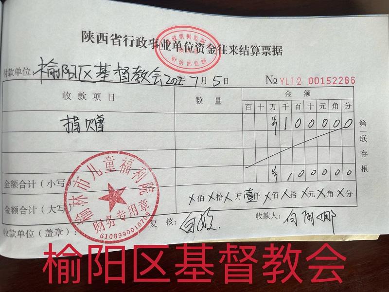 1、榆阳区基督教会捐赠现金1000元