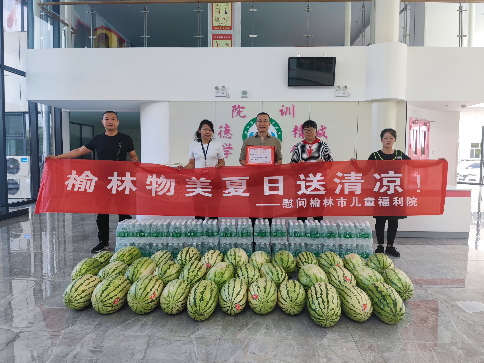 2021年7月21日,榆林物美新百超市有限公司一行4人来我院捐赠,为我院儿童带来:宁夏硒砂瓜600KG、汇源纯净水30件。感谢榆林物美新百超市有限公司的爱心捐赠!