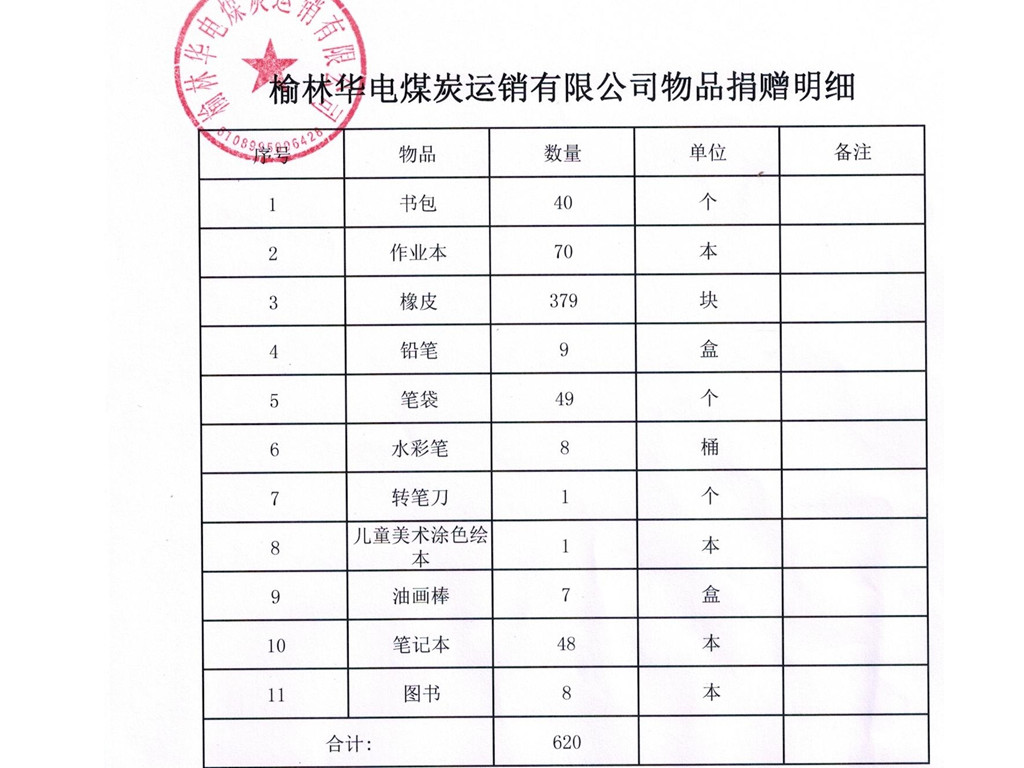 2020年9月24日,榆林华电煤炭运销有限公司一行3人来我院捐赠,为我院儿童带来:现金5000元整,图书及学习用品若干,感谢榆林华电煤炭运销有限公司的爱心捐赠!