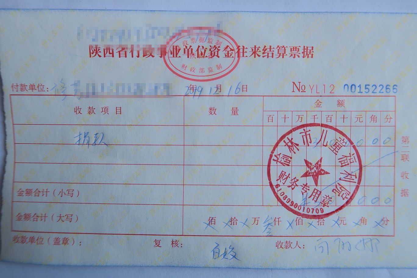 2019年12月15日,爱心人士来我院捐赠现金叁仟元整,感谢您的爱心之举!