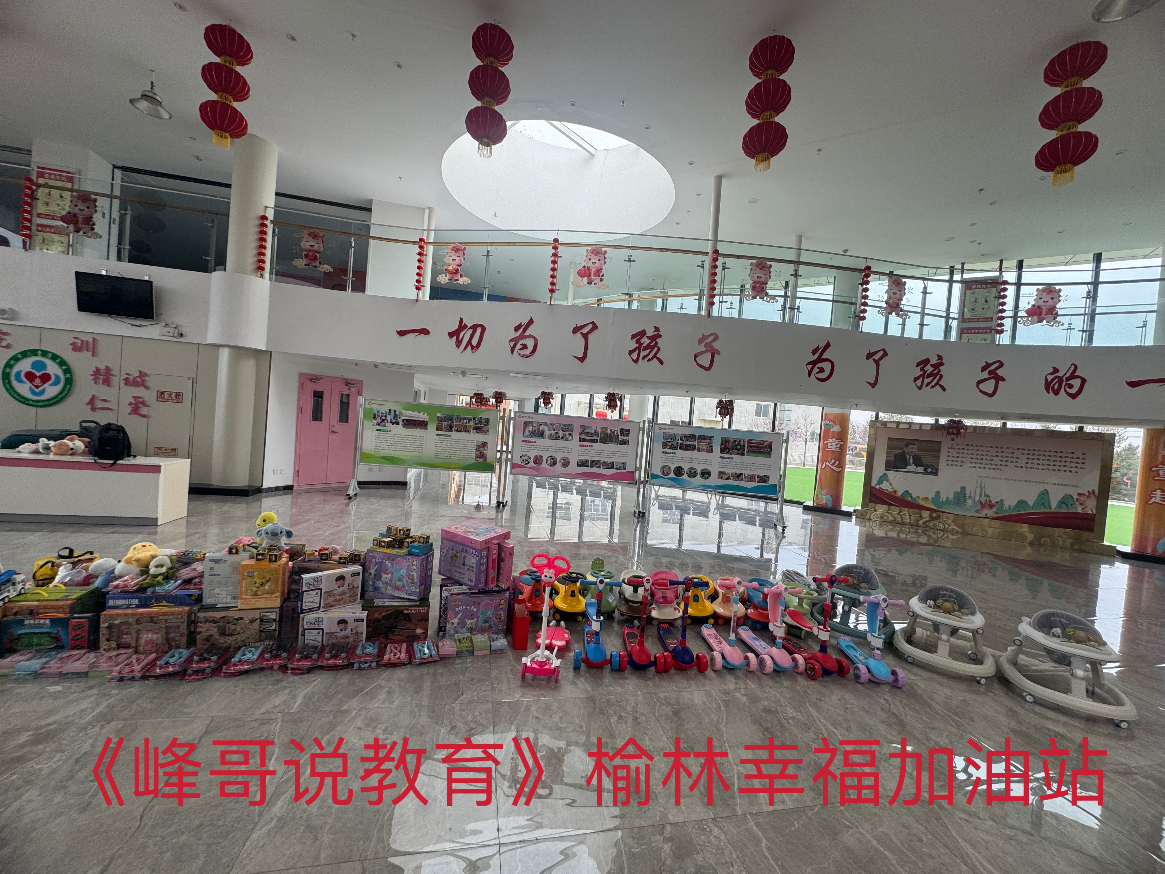 4.《峰哥说教育》榆林幸福加油站捐赠滑板车7个,学步车4个,扭扭车8个,跳绳8根,玩具礼盒84个。