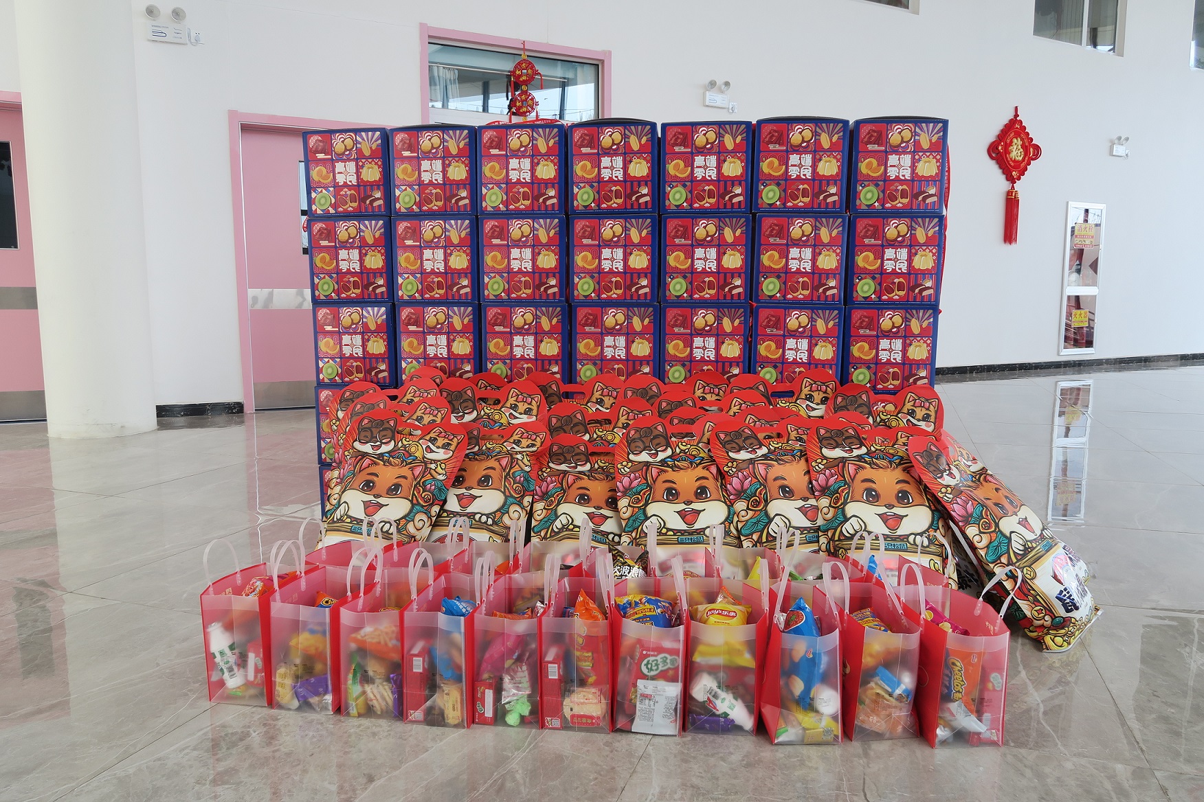 后勤保障科为孩子们备足了衣服玩具、瓜果零食等年货,膳食科也精心做好了年夜饭,品种多样,营养丰富。