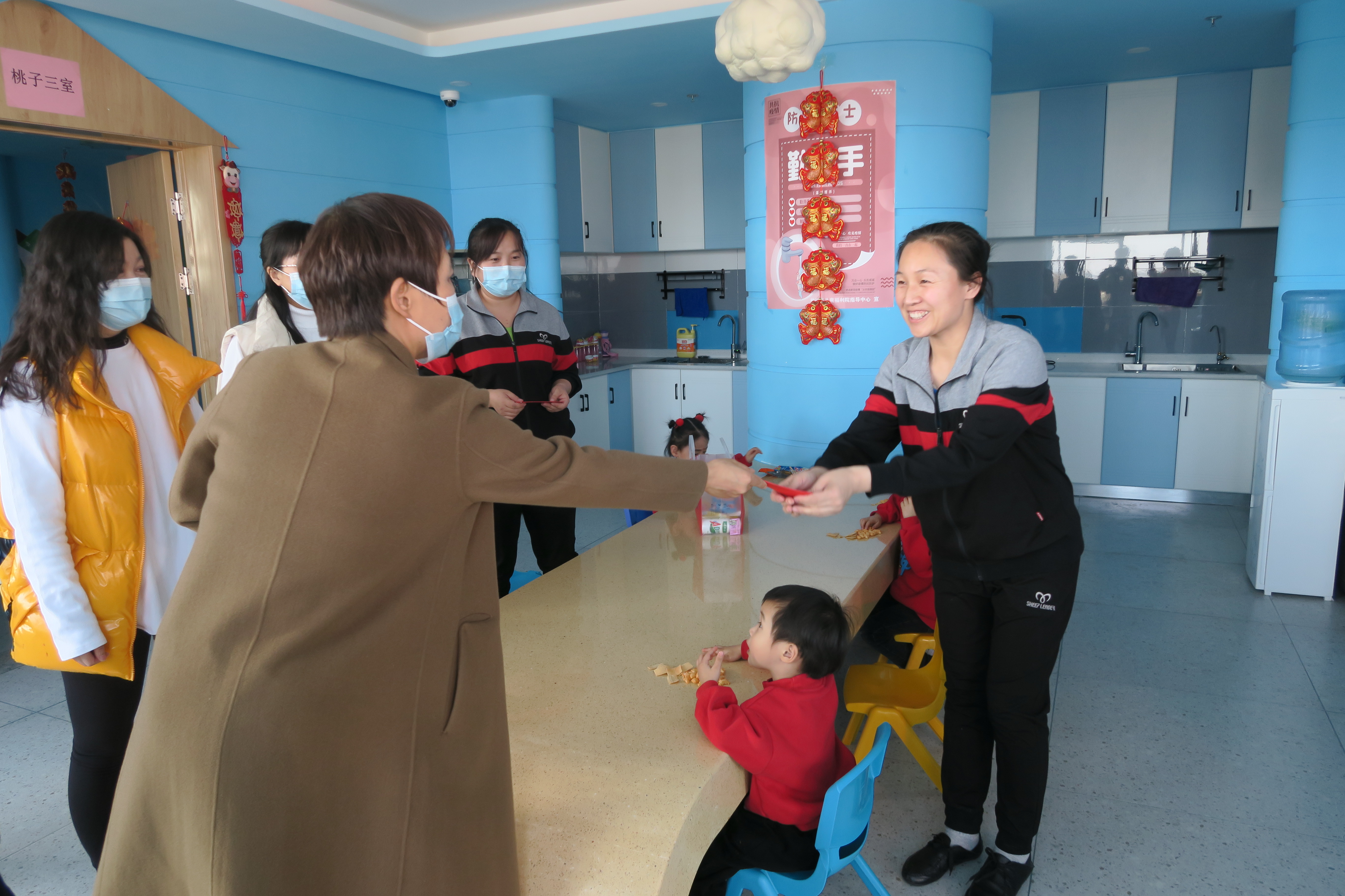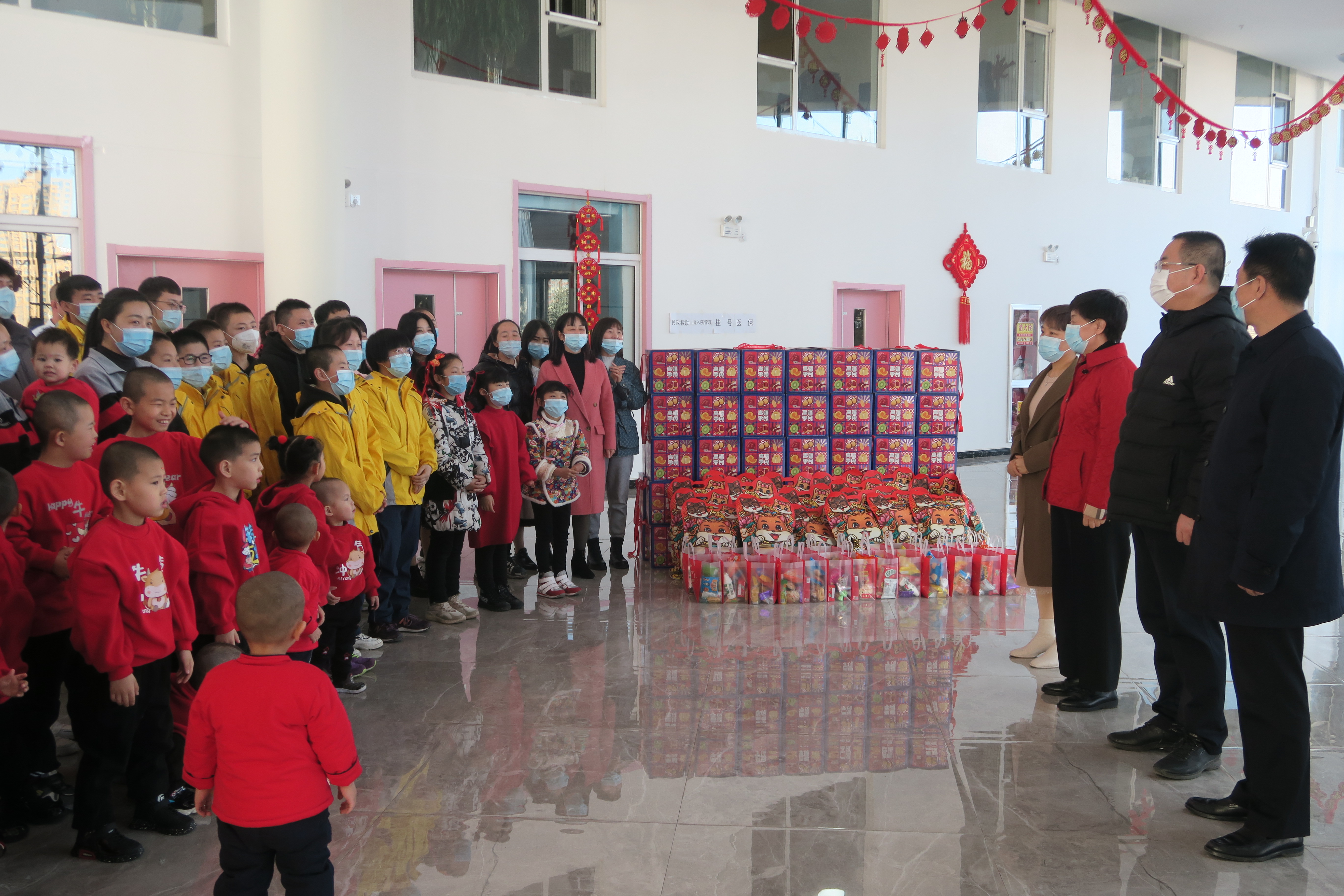 在这个阖家团圆的日子里,还有很多职工坚守岗位,默默奉献,以大爱陪伴,与孩子们共度除夕。院长何莉及领导班子成员看望慰问春节期间依然坚守岗位的干部职工,感谢大家的辛苦付出,向大家送上新春的祝福。同时叮嘱职工要继续坚守岗位,履职尽责,落实常态化疫情防控工作,筑牢防疫屏障,守护好孤残儿童生命健康安全。