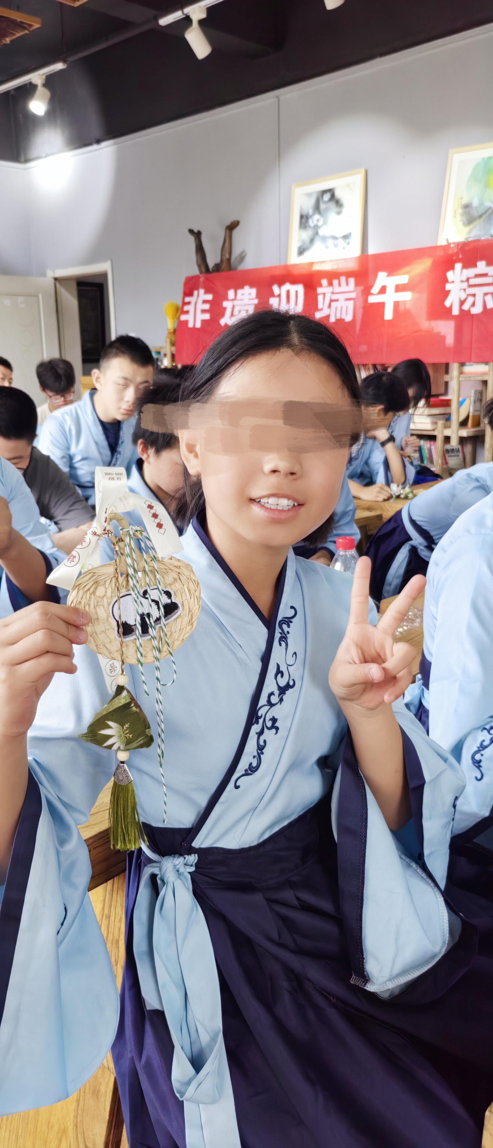 抵达活动场地后,孩子们在涂鸦签到板上分别画上了独一无二的表情来展示自己。社工对端午节来历、习俗文化等相关小知识的进行宣讲,孩子们认真的聆听。之后儿童们穿着汉服,体验传统服饰文化,并制作了端午节香包,深入体验了传统节日的氛围。
