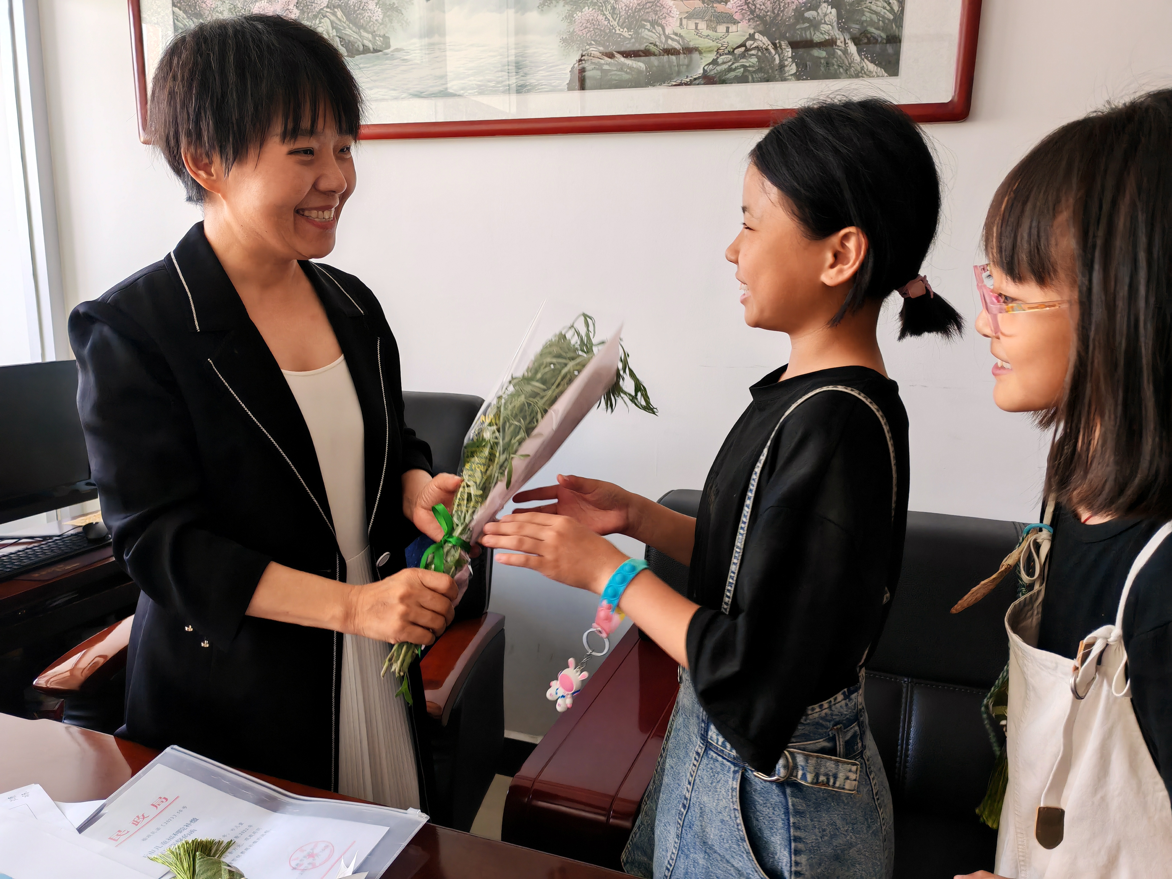 活动结束后,孩子们回到院内,将自己制作的香包连同端午安康的祝福送给院里的叔叔阿姨。院领导在孩子们宿舍门上挂上艾草,并给孩子们带上了寓意平安健康的“五彩绳”,祝福孩子们都能平安健康,幸福成长。此次活动圆满结束。