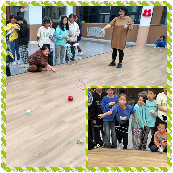 在活动的最后,社工老师拿出了为大家提前准备的多种多样的精美小礼物,为了让收获礼物的过程更加生动有趣,特意融合了套圈游戏,孩子们非常兴奋,每个人都瞄准自己的目标,奋力将手中的圈抛出。在一声声“套中啦”的欢呼声中,每个人都收获满满,心满意足。