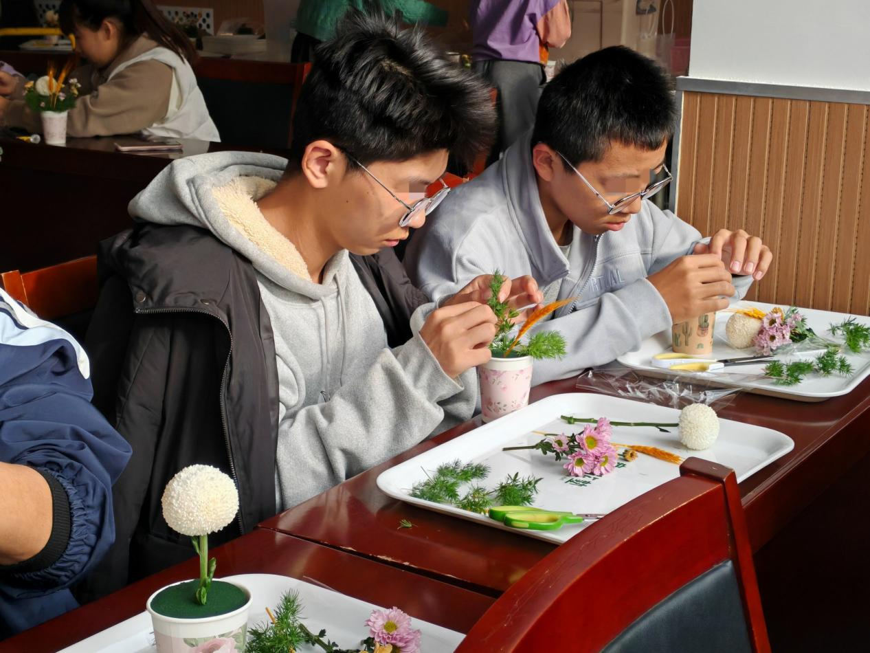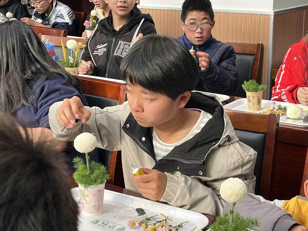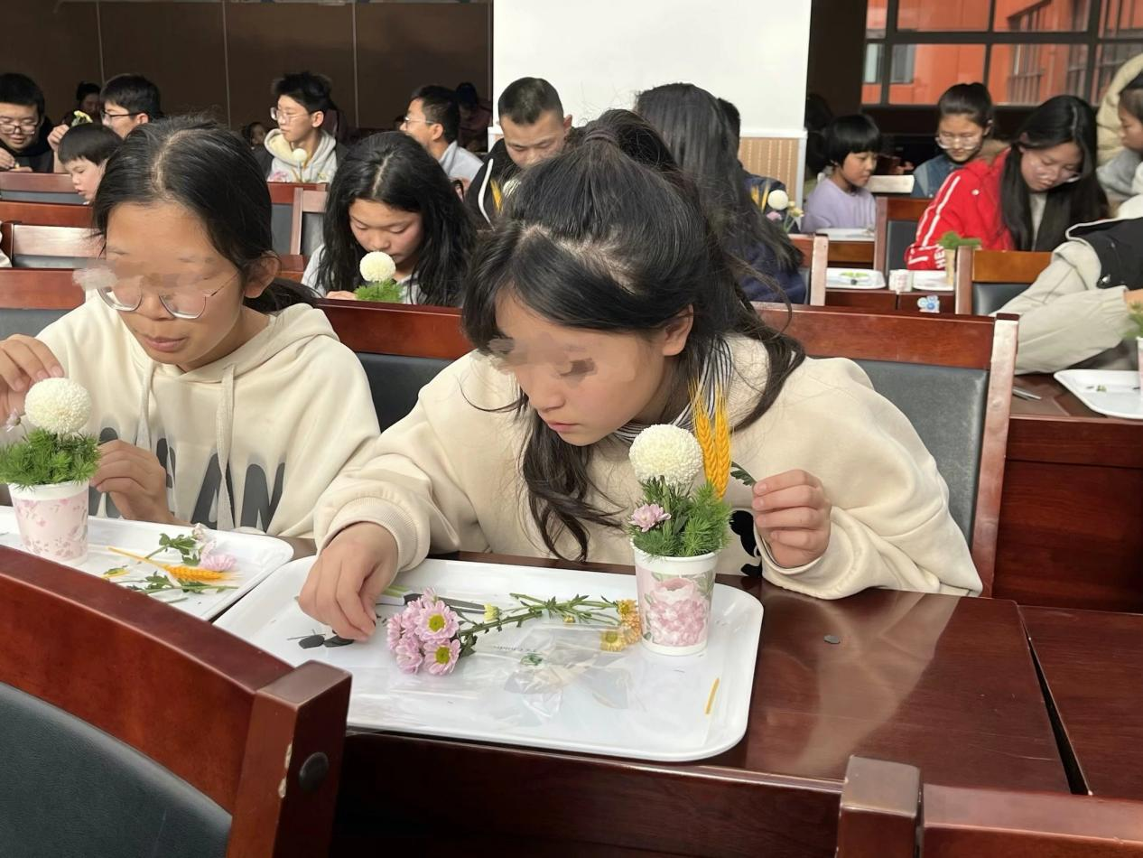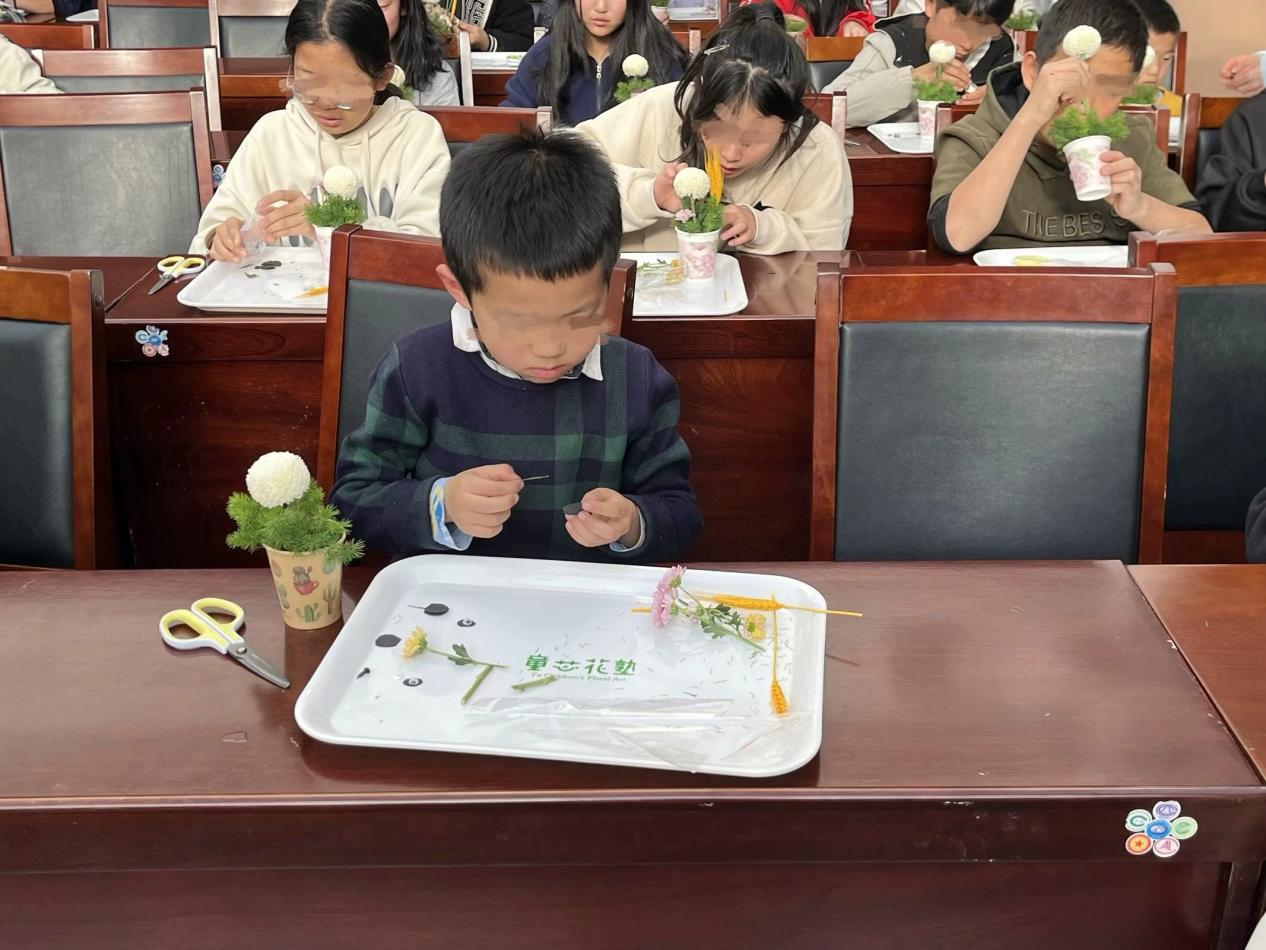 在团队老师们专业示范演示后,为孩子们分发了花材和工具。