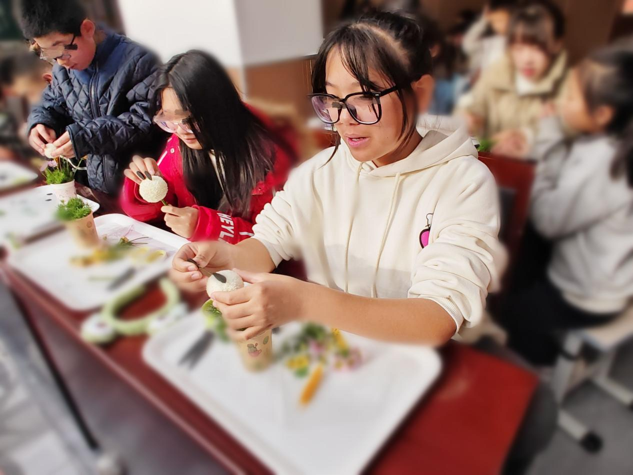 孩子们带着好奇与微笑,从摸、嗅、感,到修、剪、插,平时的“小调皮”在此时此刻都聚精会神,宁静地沉浸其中。大家在花朵间不仅仅探索发现了形状、色彩和味道,更享受着美感、诗意、快乐和放松。