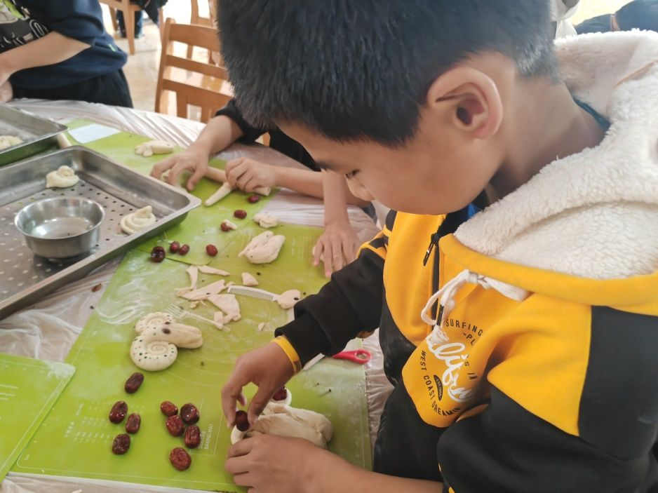 经过十几分钟的蒸制和点缀,花馍变得更加饱满和生动,正值午饭时间,孩子们津津有味的欣赏、品尝着自己的作品。通过本次活动,引领儿童感受蕴含在民俗文化中丰富的人文精神,提升了动手能力,促进了伙伴之间相互合作的精神。