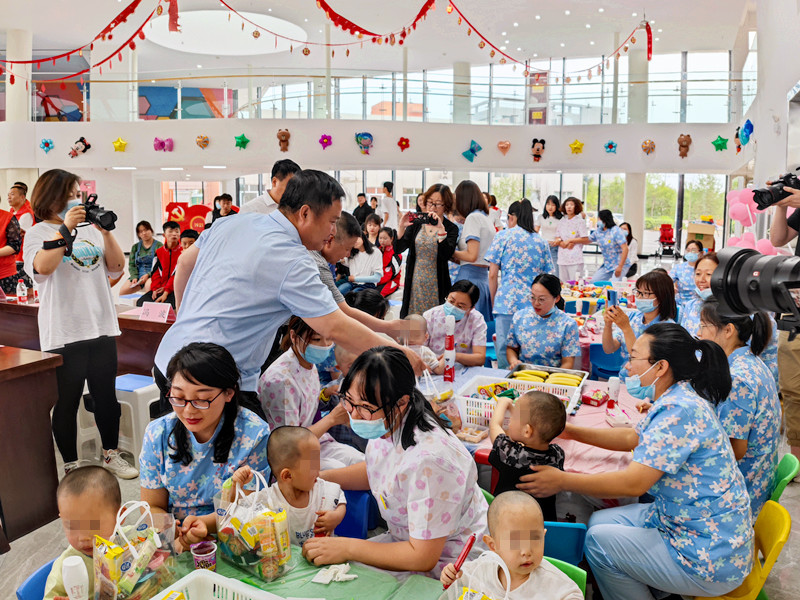 参加活动的领导和来宾为孩子们发放慰问礼物并送上节日祝福。