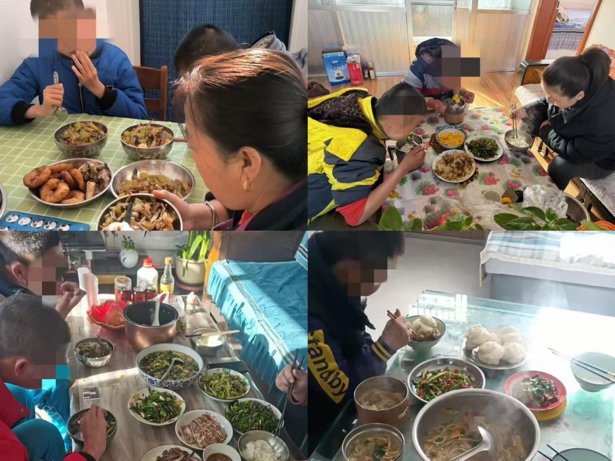 2025年元宵节,寄养家庭线上展开三餐饭菜大比拼。寄养儿童和家长围坐,拍摄饭菜和团圆画面发至群内共庆佳节。