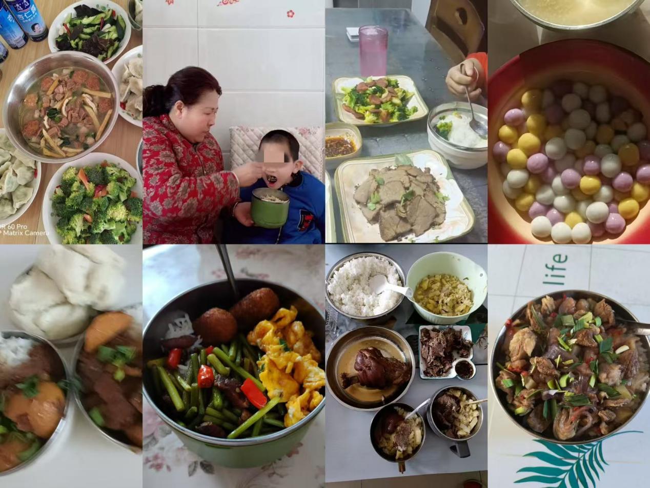 早餐,家庭们展示各具特色的佳肴,有油茶麻花、牛奶鸡蛋、稀饭鸡蛋饼等早餐。午餐,比拼愈发激烈,色香味俱全的菜品体现家长们的重视与关爱。晚餐,菜品多样,寓意吉祥,寄养家庭共庆元宵。
