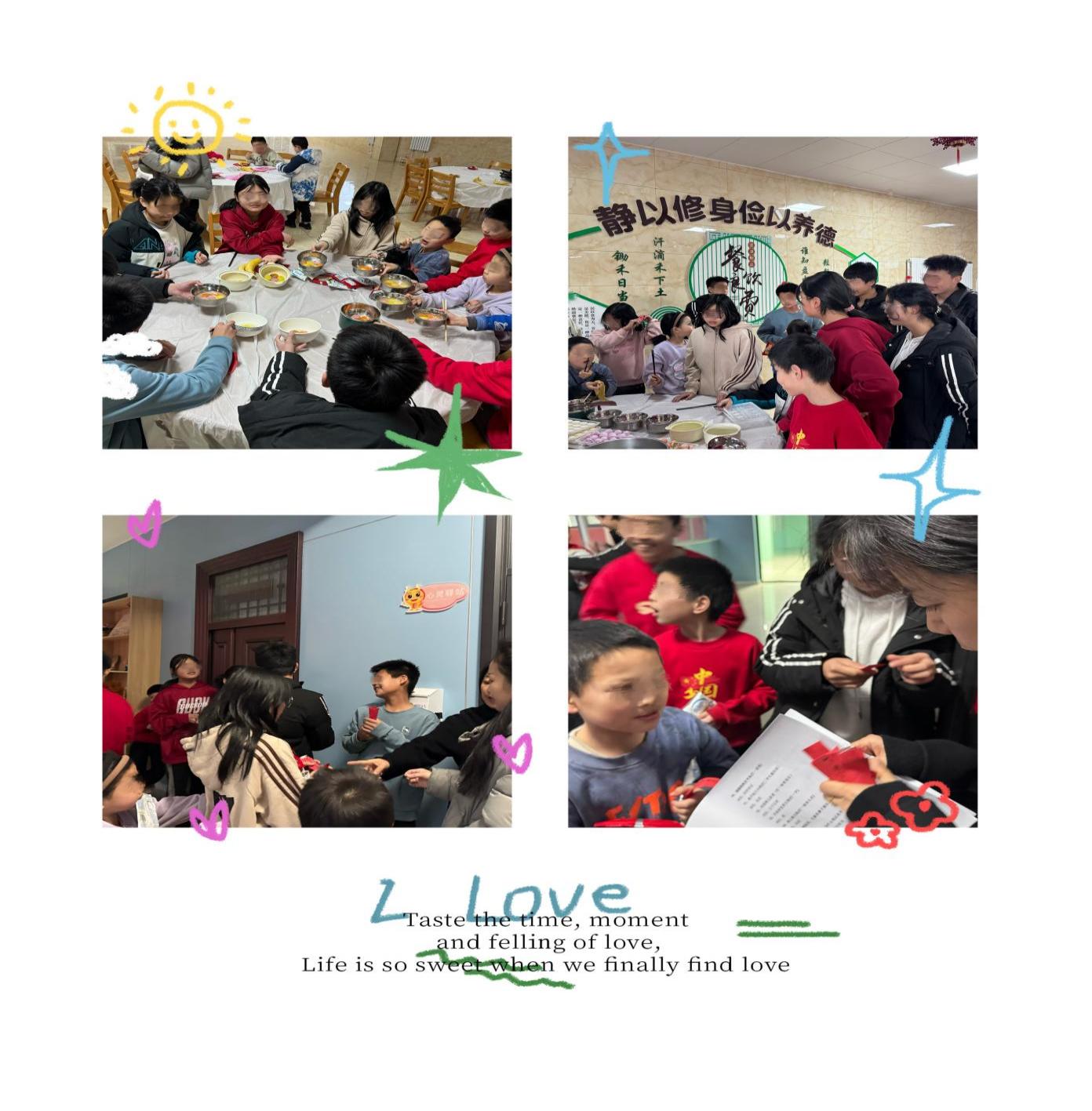 元宵佳节,一碗热腾腾的汤圆,既是团圆的象征,也是甜蜜的祝愿,社工被孩子们围起来煮汤圆,在一张张期待笑脸中,软糯香甜、五颜六色的汤圆很快煮好了,孩子们捧着碗吃着汤圆,品尝着各色汤圆不一样的滋味,元宵的欢乐氛围在欢声笑语中蔓延开来。用餐结束后,社工为孩子们送上了惊喜的零食大礼包以及温馨的节日祝福,与孩子们共同庆祝这个欢乐美好的元宵佳节。