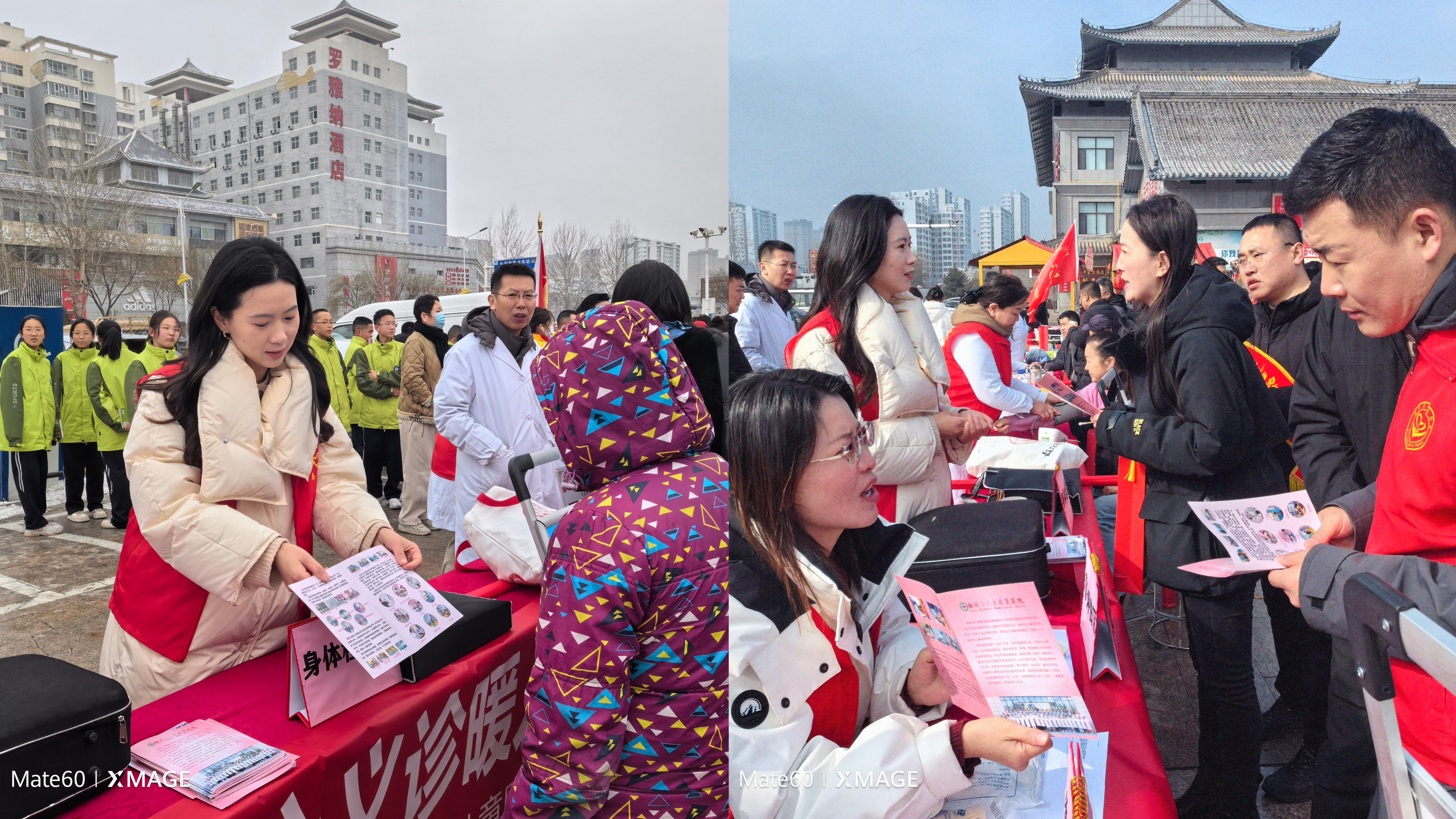 上午9点30分,义诊活动在榆阳区夫子庙南门广场正式开始。早春三月,严寒未退,冷风呼呼的阴沉天气丝毫没有减退义诊团队的服务热情,我院医生与康复治疗师们热情地接待了每一位前来问诊的居民。