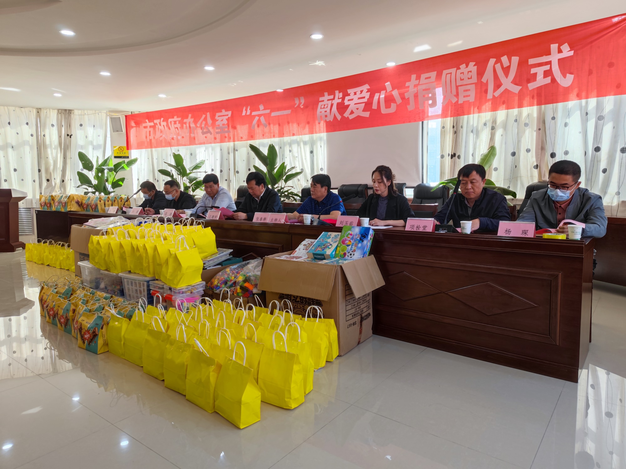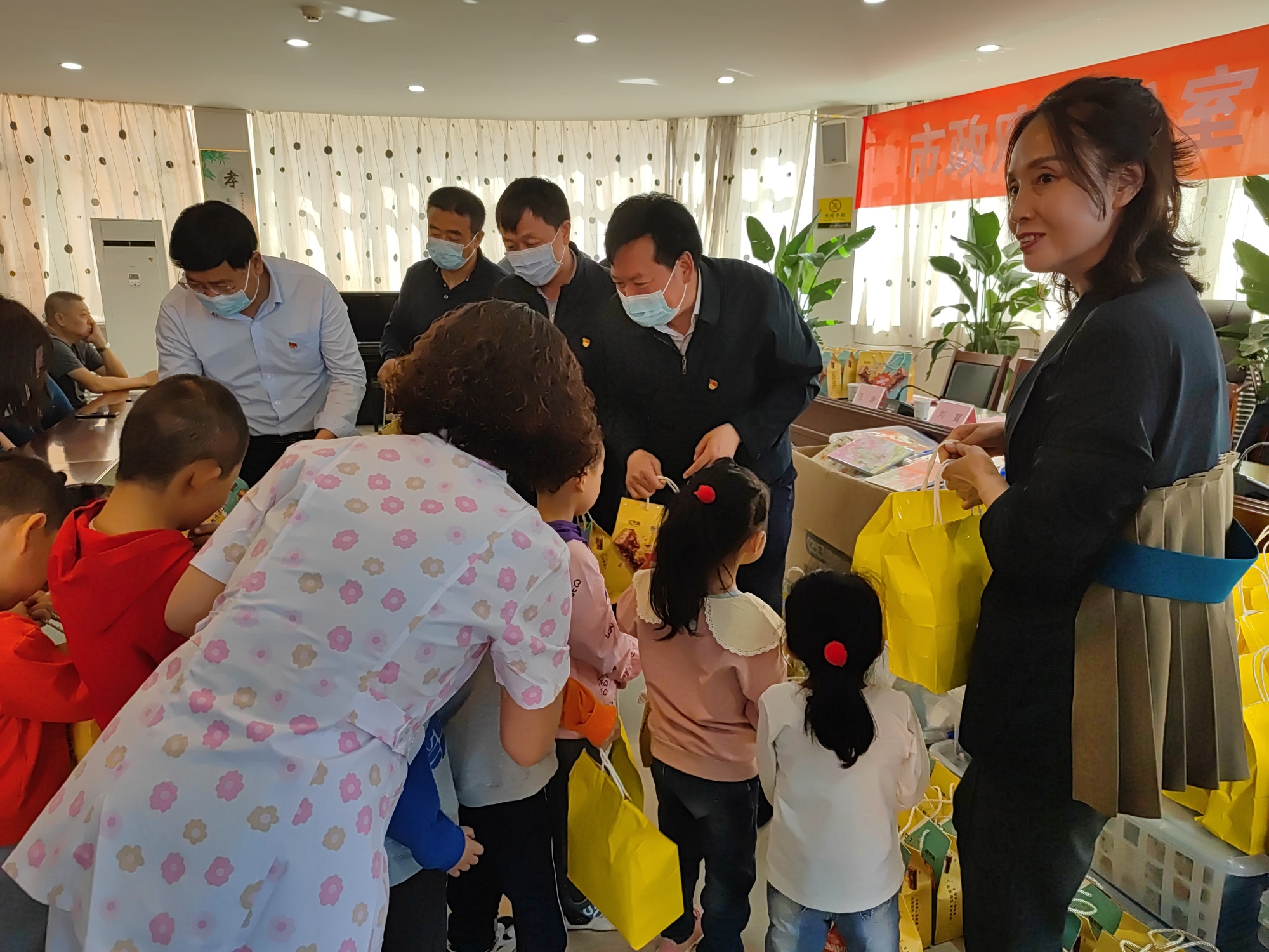 市政府办公室副秘书长、办公室主任王建学,市关工委办公室主任温渊,市政府办公室政秘科科长刘霆,市政府办公室机关党委专职副书记项拴堂,市关工委办公室科长张涛,市政府办公室政秘科干部杨琛,市关工委办公室干部高升出席捐赠仪式。参加活动的还有市儿童福利院副院长刘玉茹、工会主席白霄、业务副院长郝慧灵、部分干部职工及儿童代表。