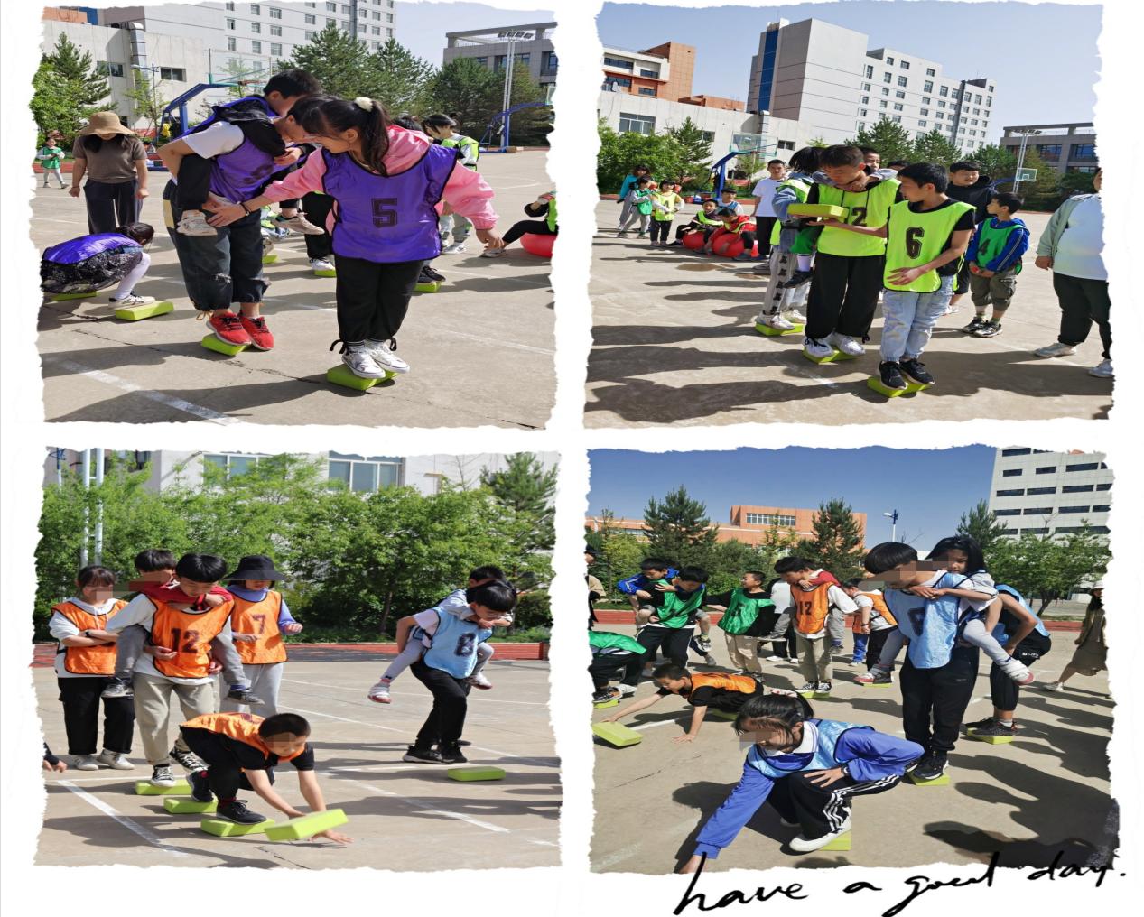 最后两项比赛是4*100趣味接力和你的地盘我做主,孩子们尽情的玩耍,尽情的在游戏中遨游。
