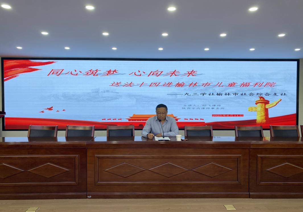 2025年6月11日下午,法润无声,“特殊”守护十余载如一日,九三学社榆林市社会综合支社公益送法“十四”进榆林市儿童福利院。我院全体干部职工参加了本次公益送法活动,由邸飞律师主讲,院长雷祥鹏主持。