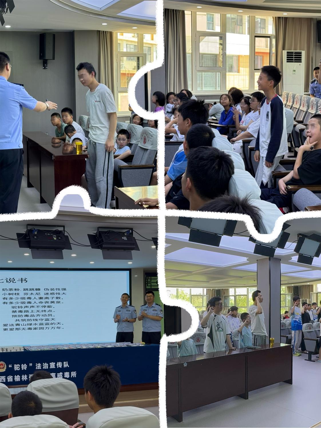 为增强青少年识毒、防毒、拒毒意识与能力,筑牢校园禁毒防线,增强他们的法律意识和自我保护能力,我院社工科联合陕西省榆林戒毒所开展了一场主题为“驼铃摇响禁毒音,童筑无毒六月天”的戒毒知识法律讲座活动,五十余名青少年参与其中,现场反响热烈。