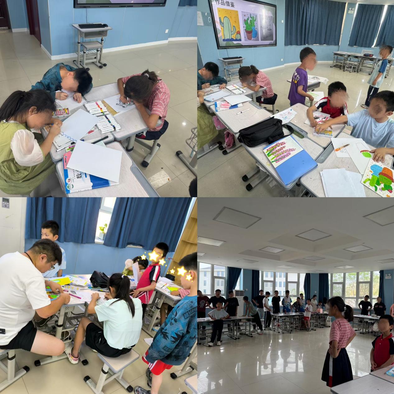 实践团以“艺术疗愈贯穿非遗传承”为特色,以“声音镜子”互动游戏打破陌生感,通过陕北大秧歌展演、黄土高原美术写生课,激发儿童对本土文化的兴趣;植物科学课程引入“陕北耐旱植物认知”,将自然科学与美育结合;开展“情绪音阶”音乐游戏、“树洞画”匿名创作,帮助儿童释放情绪、建立自我表达通道。