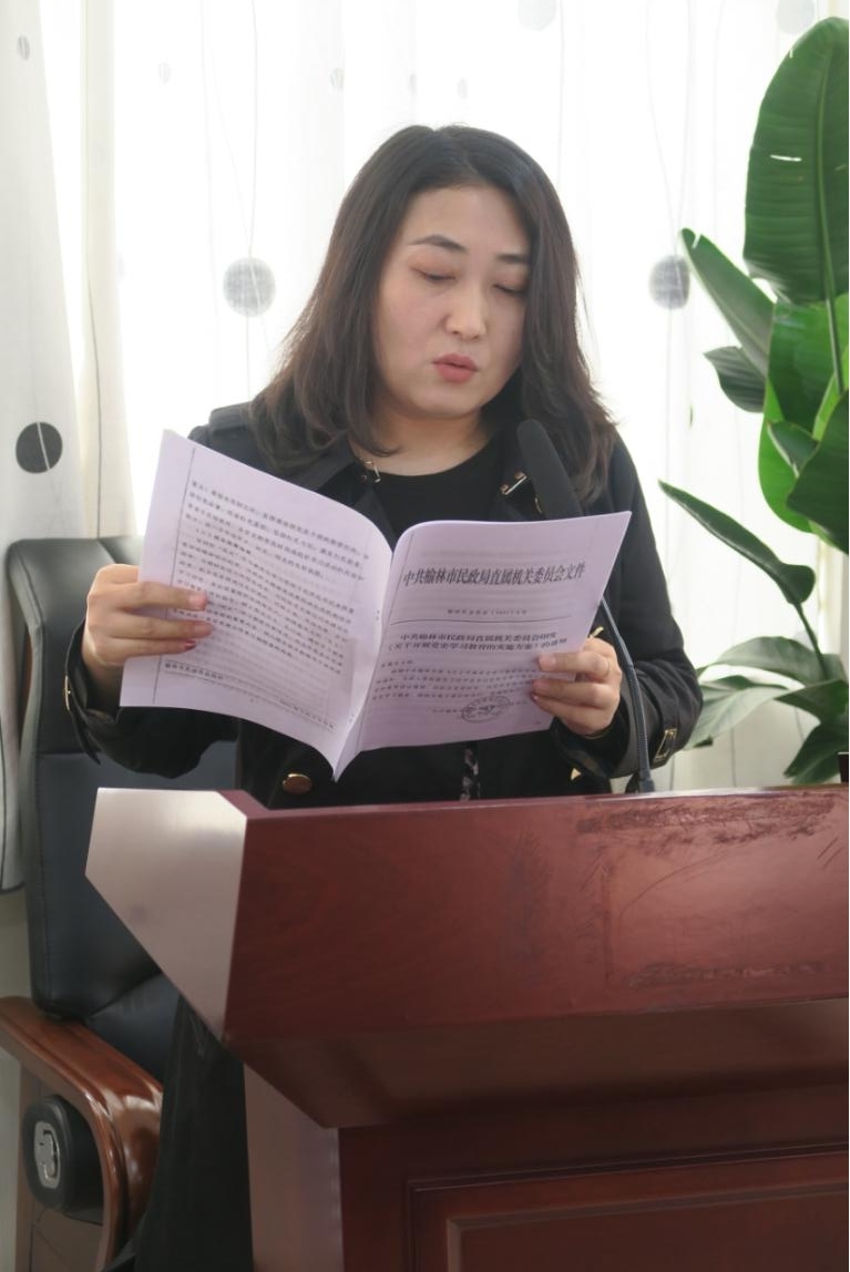 局机关党委副书记孙媚宣读了《中共榆林市民政局直属机关委员会关于开展党史学习教育的实施方案》。